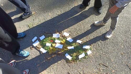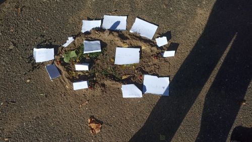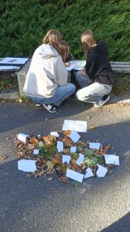 Na školním hřišti skládali barevnou mapu České republiky z podzimního listí a přírodních materiálů. Zelené listy představovaly nížiny, žluté a oranžové pahorkatiny a hnědé hory.