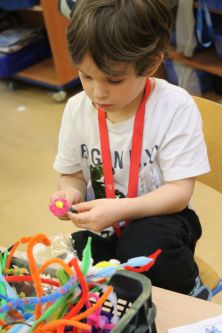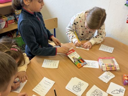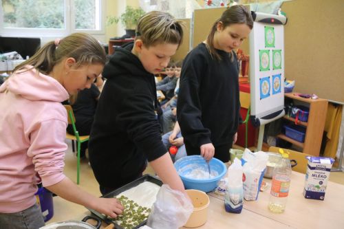 Všichni tvořili velikonoční dekorace a navštívili Velikonoční výstavu. Ochutnali také tvarohový koláč, který upekli Modráci.