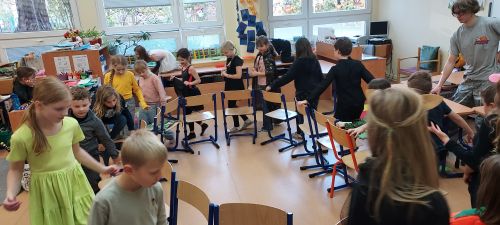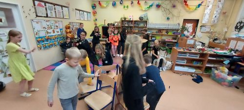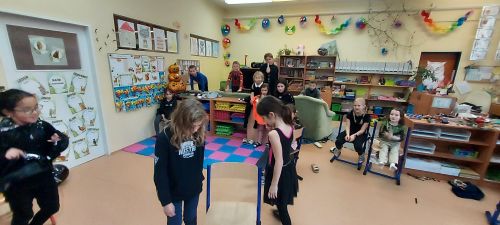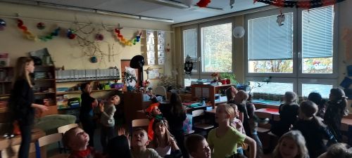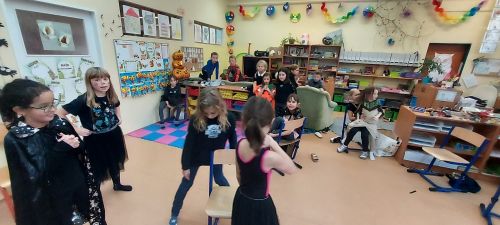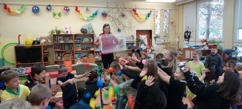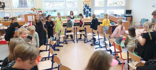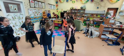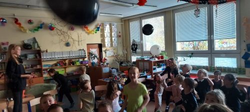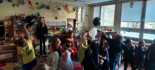 Hudba nás provázela u všech zábavných her a přispěla k veselejší atmosféře. Novinkou mezi hrami byl kolíček, který si v kruhu děti opatrně předávaly z kostýmů na kostým. No a na závěr nemohla chybět oblíbená židličkovaná, tanec s balónky a dobrůtky.