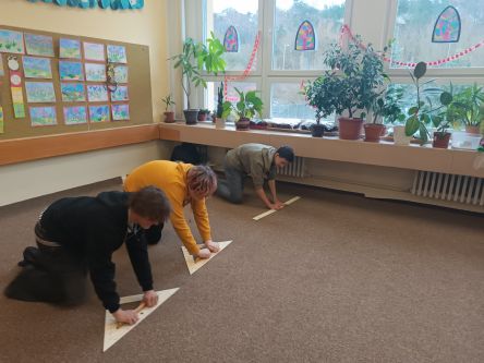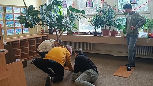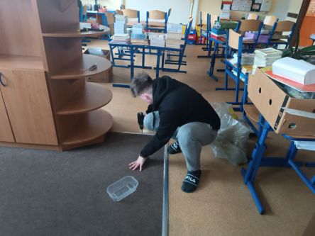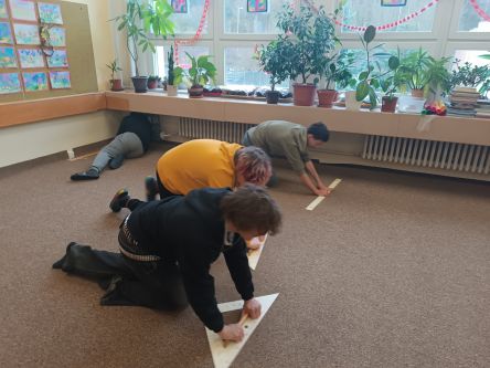 Byla to velmi náročná práce spojená se stěhováním nábytku, s montáží lišt a skříněk, s pokořením rozmarů koberce, který se velmi obtížně vměstnával do krajů třídy na stávající koberec. Velký dík za věnovaný čas v odpoledních hodinách zaslouží Přemek, Matyáš, Jenda, Kuba a Ondra.