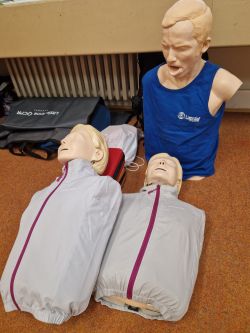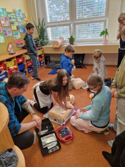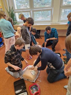 Děti si vyzkoušely na figurínách, jak správně poskytnout první pomoc s pomocí přístroje AED, jak postupovat v případech krvácení, šoku apod.