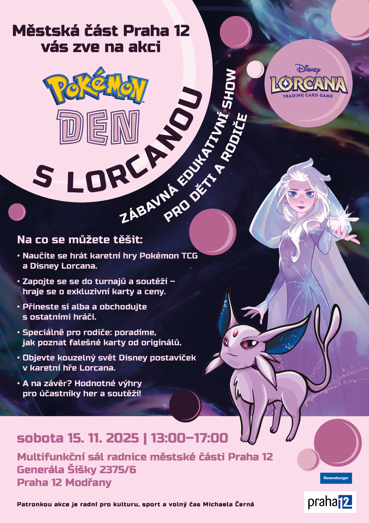 V sobotu 15. 11. pořádá městská část Praha 12 akci „Pokémon den“.