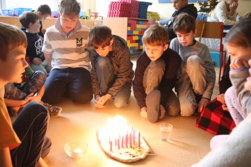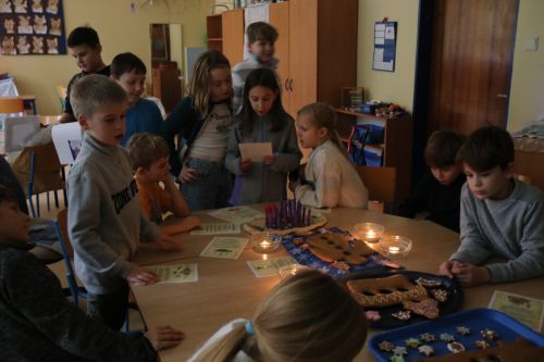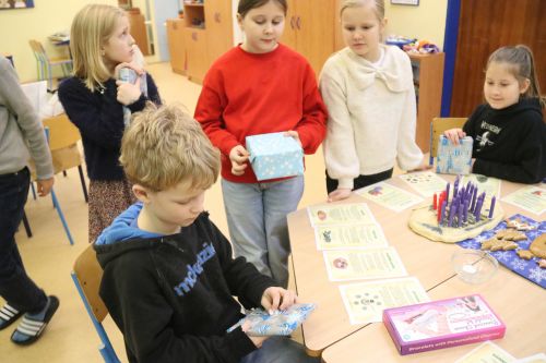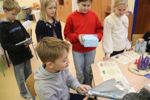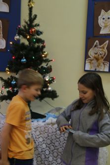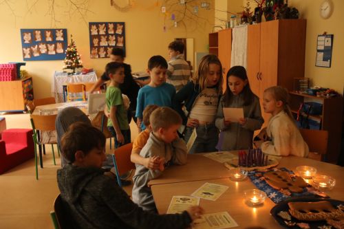 Po Vánoční výstavě, která byla v jejich třídě, hned v pondělí začaly s úklidem. Skřínky vrátily na svá místa, hračky uklidily do poliček. Roztřídily fixy a pastelky. Ustrojily stromeček, aby Ježíškovi pomohly. A ve středu 17.12. se to stalo. Ježíšek přinesl dárky pod stromeček. Děti honem připravily občerstvení – vlastnoručně upečené a nazdobené perníčky a pampeliškovou šťávu. Zazpívaly si koledy a honem na rozbalování dárků. U okna poděkovaly Ježíškovi za dárky. Určitě je slyšel :-).