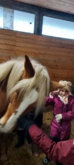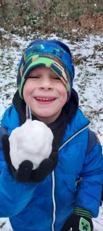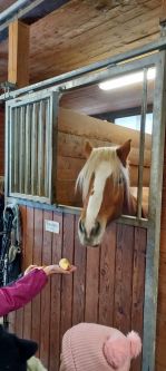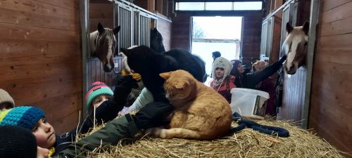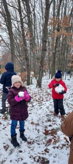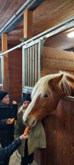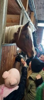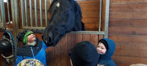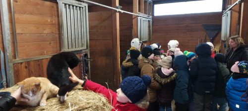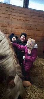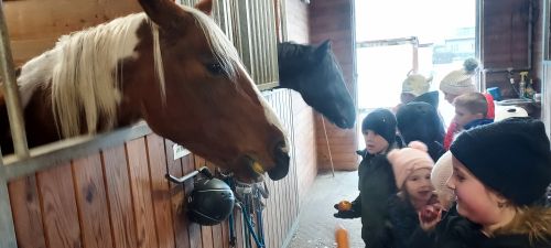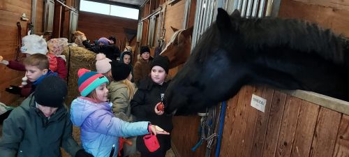 Čerstvě napadl sníh a to umocnilo radost z očekávaného zážitku. Pro koníčky jsme měli přichystané dobrůtky, které potěšily. Odcházeli jsme o něco chytřejší a ještě jsme stihli koulovačku.