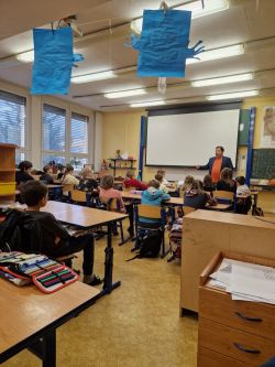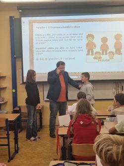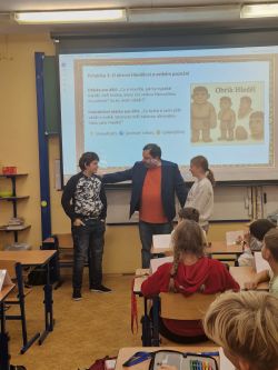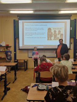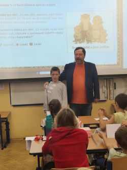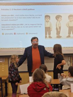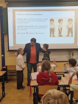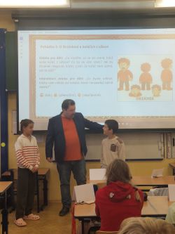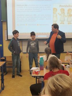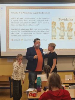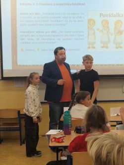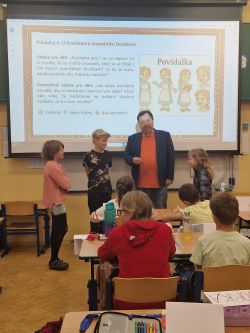Příjemné dopoledne strávila 7.11. třída 5.A v přítomnosti spisovatele pana Petra Březiny, autora 9 knih a téměř 55 pohádkových příběhů a básniček.