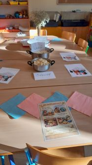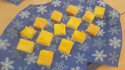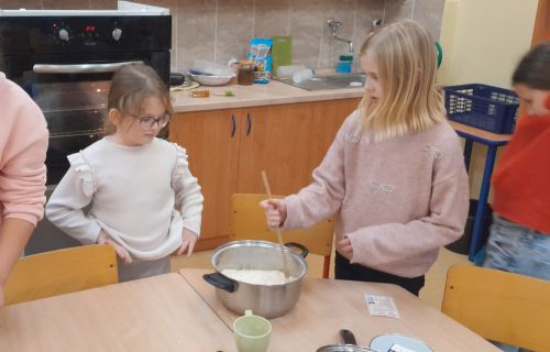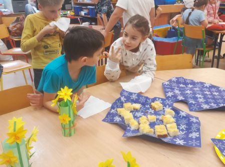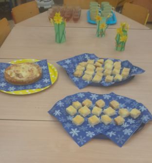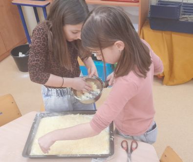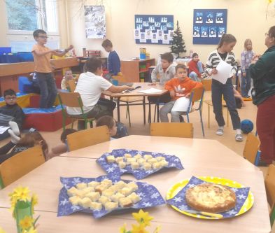 22. ledna jsme pekli koláč. 23. ledna jsme slavili Den koláčů. Na oslavu jsme pozvali děti ze žluté družiny. Tvarohový koláč všem moc chutnal.