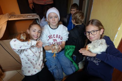 Na konci září se u nás ve třídě vylíhla kuřátka (http://naberanku.cz/lihen-v-5-a), které se vzali domů dva kluci z naší třídy.