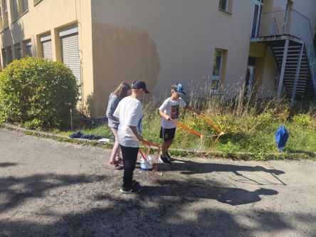 Spotřebovali jsme 12 l speciálního roztoku na mega bubliny, který jsme si sami vyrobili.