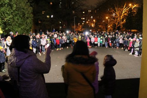 Česko zpívalo koledy tradičně i v Modřanech před školou Na Beránku.