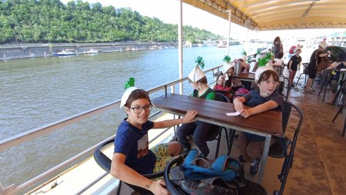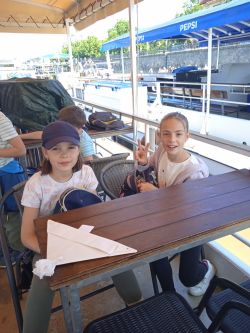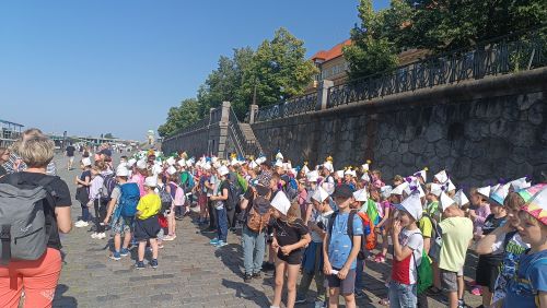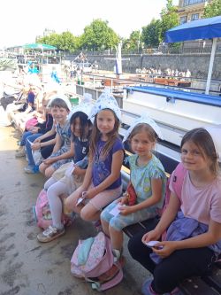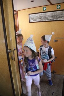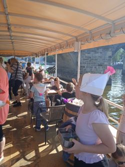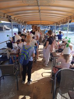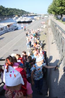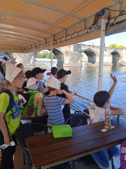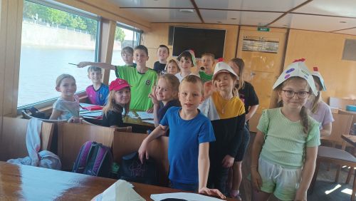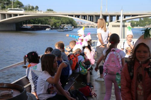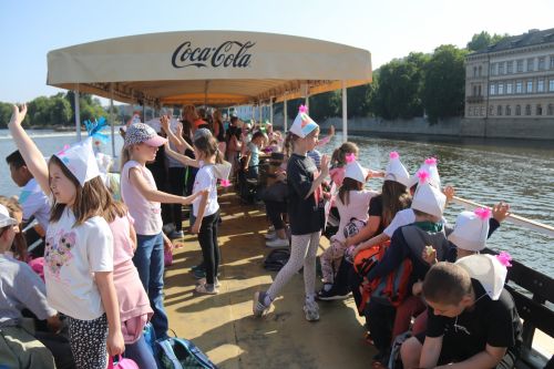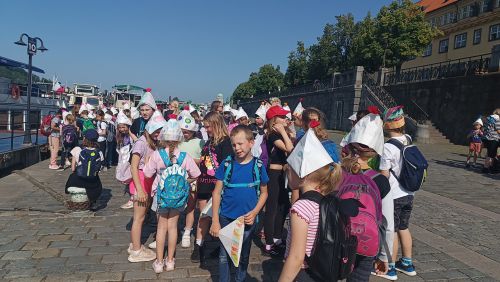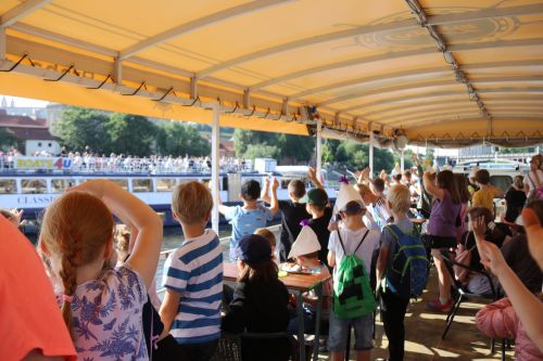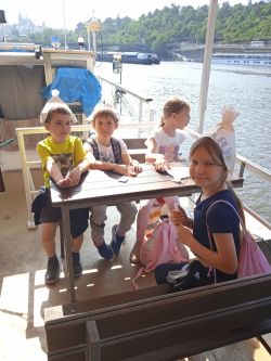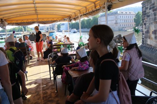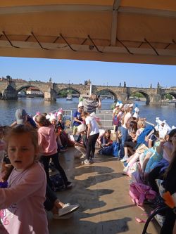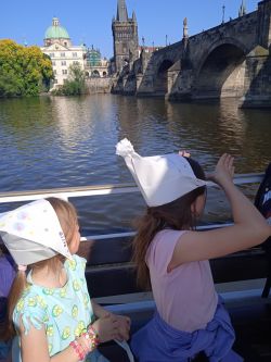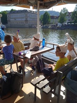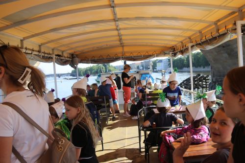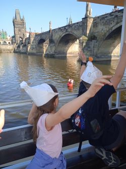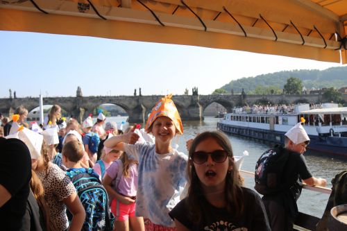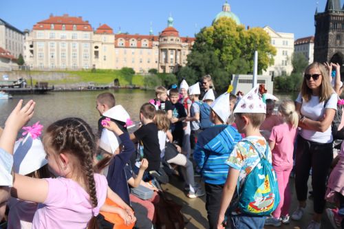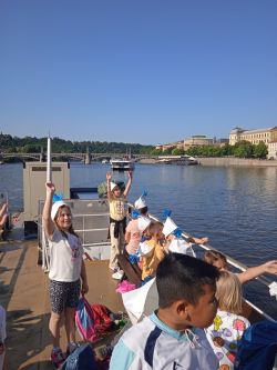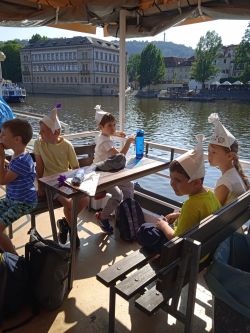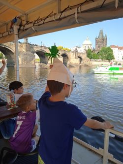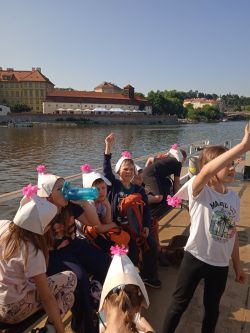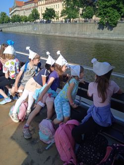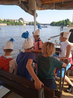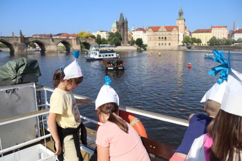 Den „D“ se blížil a my jsme potřebovali získat palubní lístek na parník, abychom se mohli proplout po této krásné řece a prohlížet si mosty a historické stavby z Vltavy. Za správně zodpovězené otázky jsme získali palubní lístky. Ještě jsme museli mít složenou námořnickou čepici a hurá na parník.