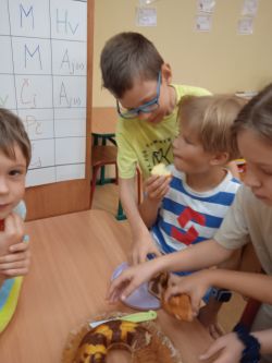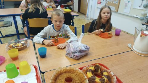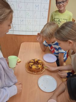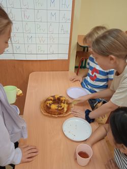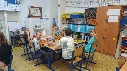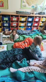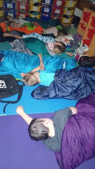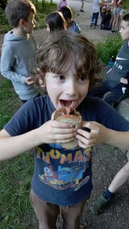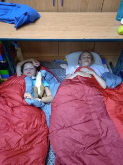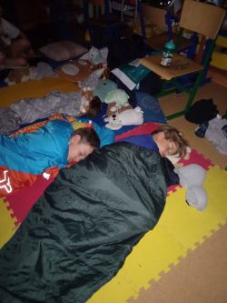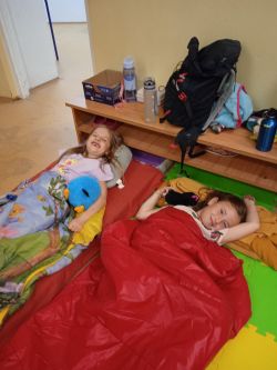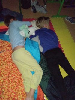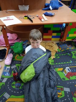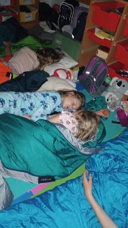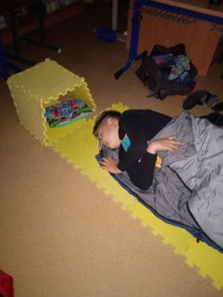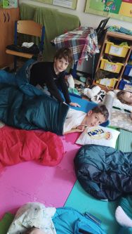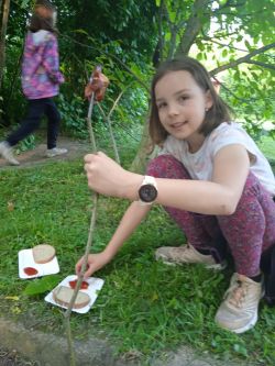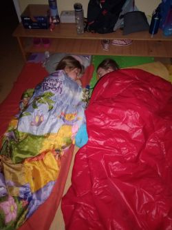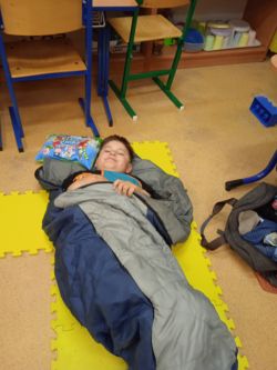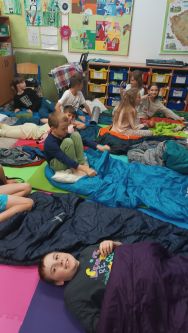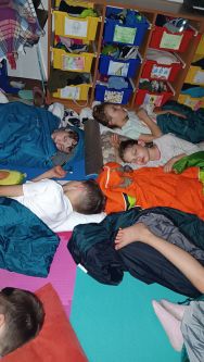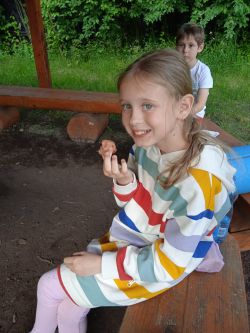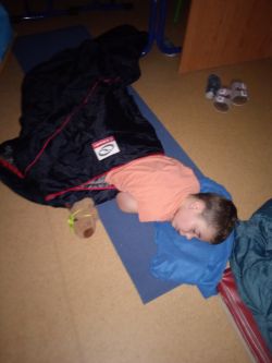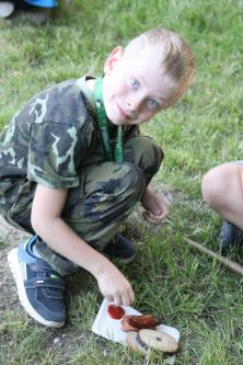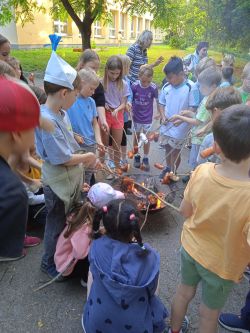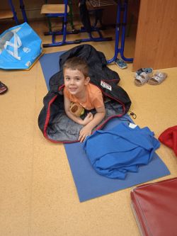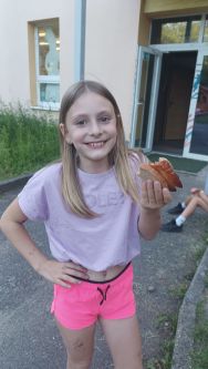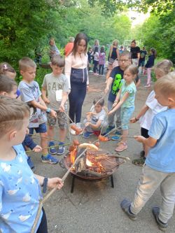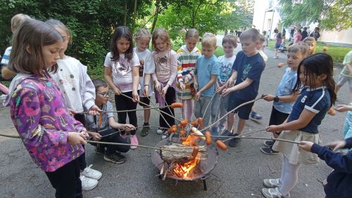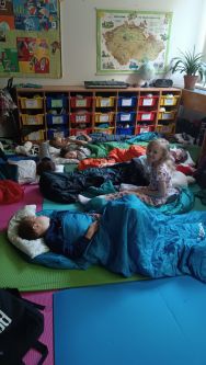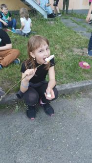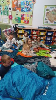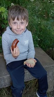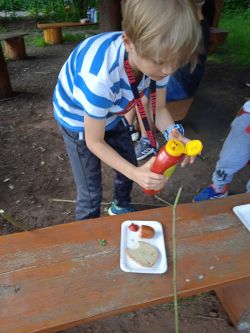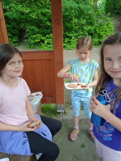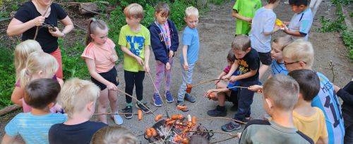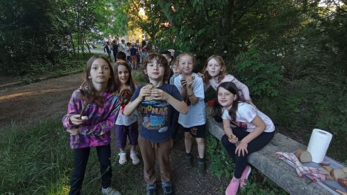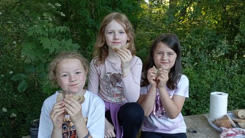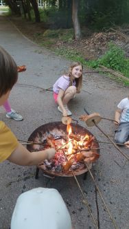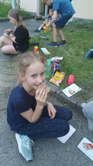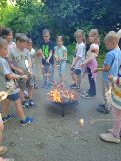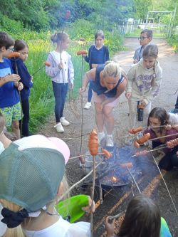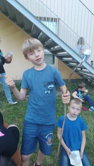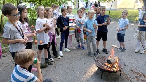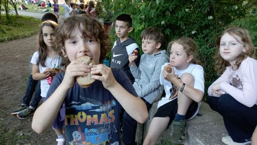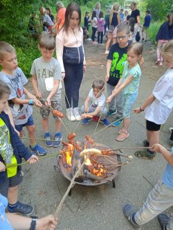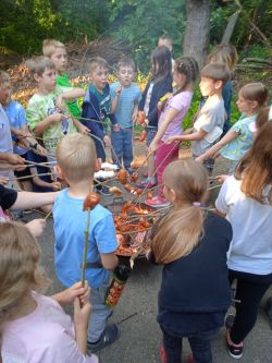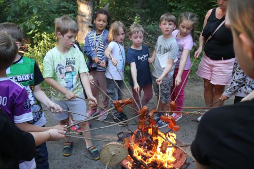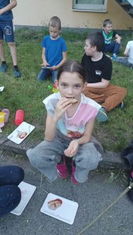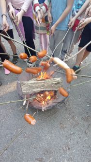 K večeři jsme si opekli buřty. Chutnali nám. A pak každý do své družiny a spát :-). Ráno s kamarády se nám líbilo. Bábovka byla moc dobrá. Už se těšíme na nějakou další výpravu.