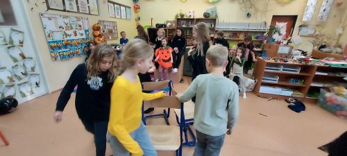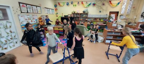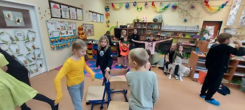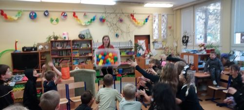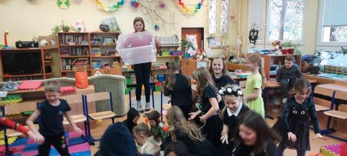 Hudba nás provázela u všech zábavných her a přispěla k veselejší atmosféře. Novinkou mezi hrami byl kolíček, který si v kruhu děti opatrně předávaly z kostýmů na kostým. No a na závěr nemohla chybět oblíbená židličkovaná, tanec s balónky a dobrůtky.