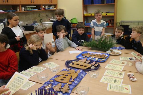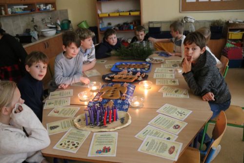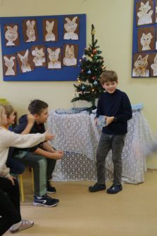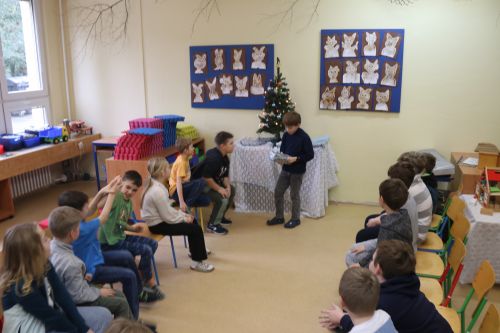 Po Vánoční výstavě, která byla v jejich třídě, hned v pondělí začaly s úklidem. Skřínky vrátily na svá místa, hračky uklidily do poliček. Roztřídily fixy a pastelky. Ustrojily stromeček, aby Ježíškovi pomohly. A ve středu 17.12. se to stalo. Ježíšek přinesl dárky pod stromeček. Děti honem připravily občerstvení – vlastnoručně upečené a nazdobené perníčky a pampeliškovou šťávu. Zazpívaly si koledy a honem na rozbalování dárků. U okna poděkovaly Ježíškovi za dárky. Určitě je slyšel :-).