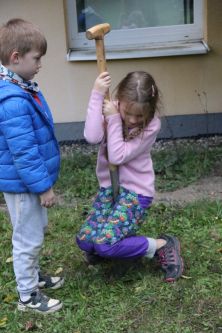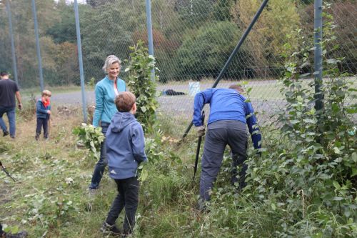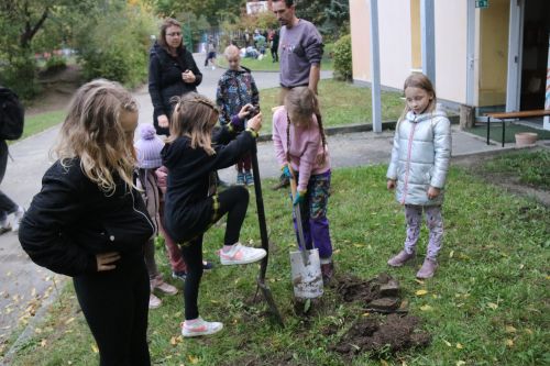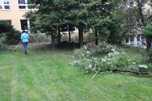 U hřiště odstranili náletové dřeviny, uklidili větve z přední části zahrady. Shrabali a odvezli posekaný ostružiník, který se rozrůstal v zadní části zahrady. Při tomto úklidu nám pomáhal i zahradník Michal Plundra. Odborně prořezal okrasné rostliny a ovocné stromy. S dětmi zasadil v zahradě novou dřevinu hloh a květiny – chrpy, kopretiny a chrastavec rolní.
