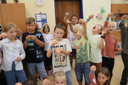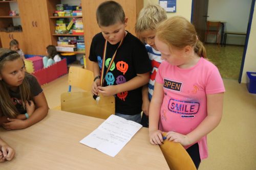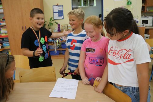 Smajlíci už věděli, do kterých oddělení školní družiny děti budou chodit. Děti to ještě nevěděly. Začalo velké hledání. A pak byla velká radost ze shledání s kamarády. Děti si domů nesly medaile nebo náramky v barvě svého oddělní.